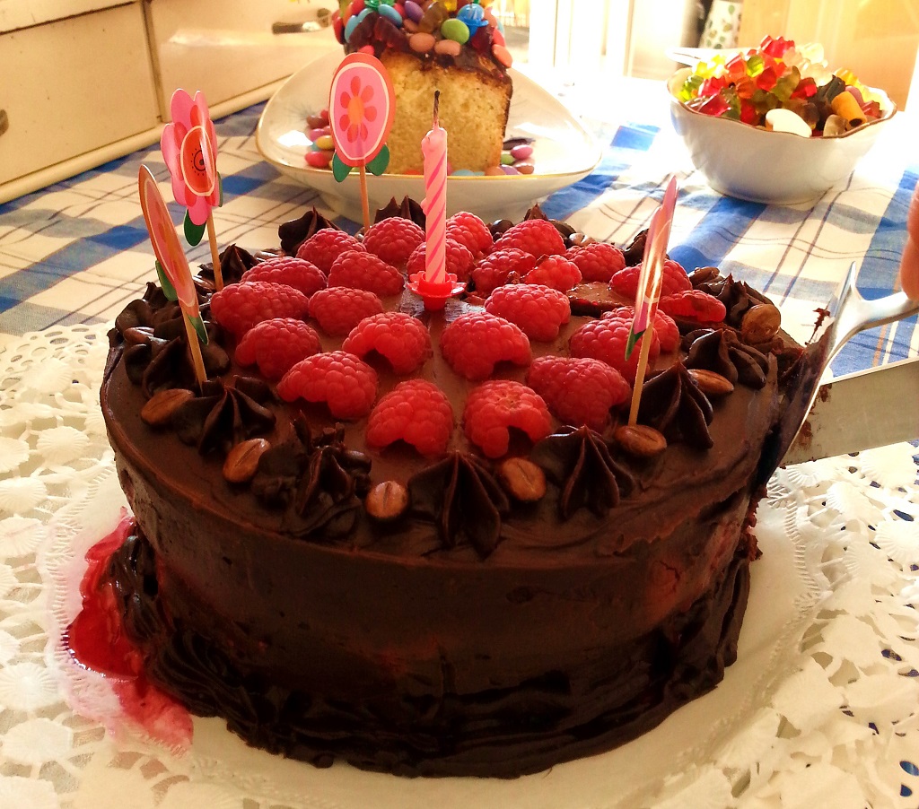 Die Himbeeren im Garten sind dieses Jahr viel später dran als sonst bei mir, deshalb gibt es diese Köstlichkeit auch etwas verspätet auf dem Blog. Die Himbeer-Mokka Torte ist üppig, aber nicht zu süß. Sie hat einen ganz leichten Kaffeegeschmack, ist saftig und natürlich ein Hingucker. Man kann sie auch mit gefrorenen Himbeeren machen, aber ich empfehle frische, weil die nicht so viel Flüssigkeit verlieren. Ich habe diesen Kuchen jetzt mit halb-Frischen und halb-Gefrorenen gemacht und geschmacklich gibt es sich nicht viel. Die Kreation habe ich für eine liebe Freundin zum Geburtstag gemacht. Geht überraschend schnell und – wie so oft – sieht komplexer aus, als er ist. Das ist ja eh immer gut.