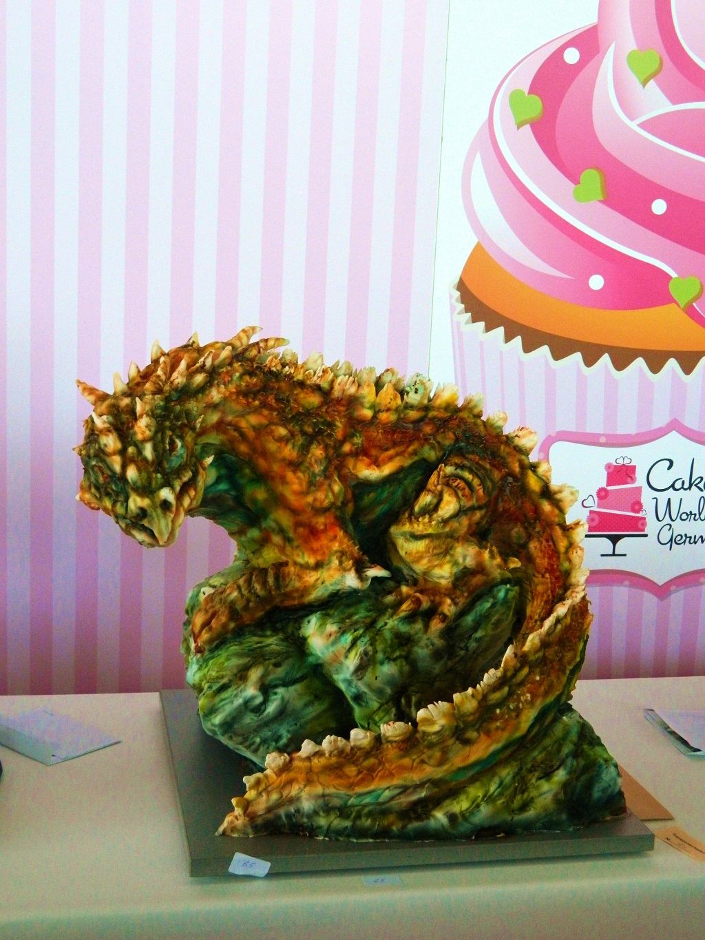 Die Showtorten vom Wettbewerb sind das Sahnehäupchen auf der Messe. Sie zeigen wie es geht und wie man mit Zeit, Geduld und Kreativität aus den Torten das rausholen kann, was sie zu Kunstwerken macht. Es waren wirklich absolute Highlights dabei. Allerdings sind viele in sich so hoch, dass ich so gar nicht wüsste, wie ich sie am besten schneiden würde. Aber darum geht es hier wahrscheinlich auch nicht.