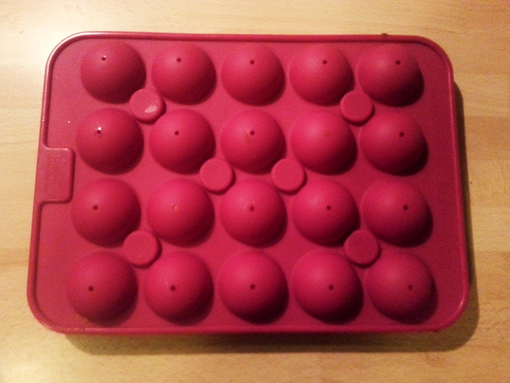 5.) Die fertigen Cakepops raus nehmen und komplett auskühlen lassen, bevor man die Form öffnet, sonst brechen sie. Vorsichtig lösen.