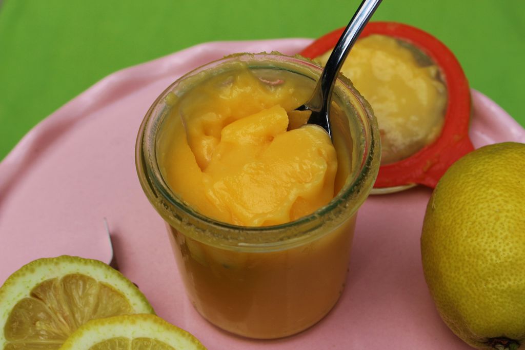 Was auf den ersten Blick etwas kryptisch klingt, ist ein köstlicher Zitronen Pudding. Das Gericht kommt aus England, wo es als Lemon Curd bekannt ist (Aussprache „Körd“). Dort kommt es zwischen Kekse, aufs Toast oder wird direkt als Dessert gelöffelt. Auf Kuchen macht Lemon Curd aber auch eine tolle Figur. Außerdem verfeinert es Joghurt und Quark Desserts, schmeckt sehr lecker als Soße auf Torten und Cupcakes und lässt sich auch gut mit Löffelbiskuit dippen. Außerdem ist es einfach eine tolle Art, übriges Eigelb zu verarbeiten, wenn man zum Beispiel Baisers & Co gebacken hat. Andersrum kann man aber natürlich einfach nur das Eigelb verwenden und das Eiweiß für später aufheben. Ideen für die Resteverarbeitung gibt es am Ende des Beitrags. Übrigens – das Rezept ist zuckeroptimiert und damit nicht so pappsüß, wie in England sonst üblich, sondern eher erfrischend.