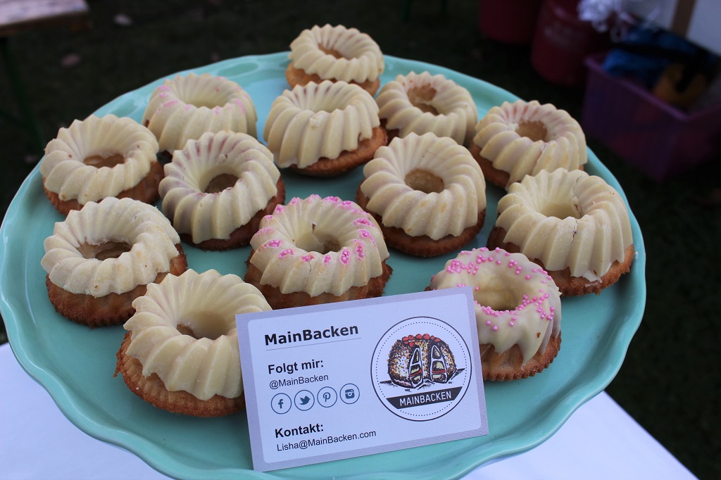 Das letzte Wochenende hatte definitiv mehr als nur zwei Tage. Zuerst habe ich eine dreistöckige Hochzeitstorte für meine Schwägerin gemacht und dann noch 700 Mini Küchlein aus dem Ärmel geschüttelt. Und (ihr wisst ja wie sowas ist) mitten drin hat meine Küchenmaschine nun endgültig den Geist aufgegeben. Das heißt, gut die Hälfte der Küchlein habe ich mit dem Schneebesen gerührt. Das war ein intensives Workout, aber es hat sich sowas von gelohnt. Die Torte kam super an und wenn ich so sehe, wie die Reaktionen auf die Mini Gugelhupfs waren, dann war es doch jede Minute wert! Die kleinen Küchlein waren ein Geschenk für die Besucherinnen des Survivor Zelts beim Race for Survival 2016 in Frankfurt. Das Rennen für den guten Zweck wird von Aktion Pink organisiert – einem Verein für die Erhaltung der Brustgesundheit.