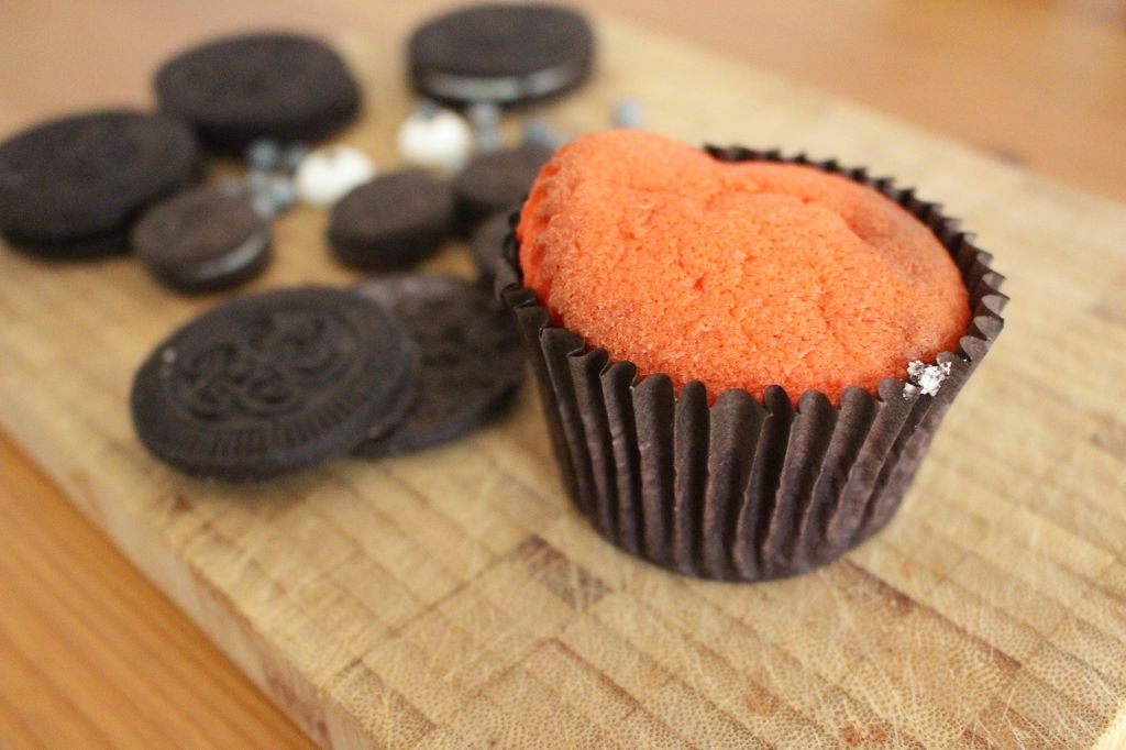 Passend zu Halloween zeige ich euch hier ein leckeres Rezept für Cupcakes mit Oreo Creme, dekoriert als Fledermaus. Ich finde sie super drollig und ich garantiere euch – sie sind sehr schnell und einfach gemacht und damit ein tolles Rezept für die Halloweenparty. Man kann sie auch gut mit Kindern zusammen machen, weil man die Teile nur zusammen stecken muss und sie sind auch nicht gruselig, sondern eher knuffig. Ich habe die Cupcakes rot eingefärbt, aber das tut nichts am Geschmack, das kann man auch lassen, wenn man es nicht mag. Für die Augen habe ich kleine Oreo-Kekse benutzt – ihr könnt aber auch gekaufte oder selbstgemachte Zuckeraugen nehmen. Die Mini Oreos haben leider viele Läden nicht im Sortiment. Aber man ist ja kreativ 😉
