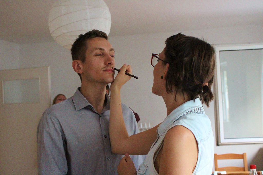 Pannenhilfe:  Kommt ein Gast mit etwas zu dezenter Verkleidung an, dürfen alle mit anpacken – ein falscher Schnurrbart ist schnell mit etwas Kajal aufgemalt.