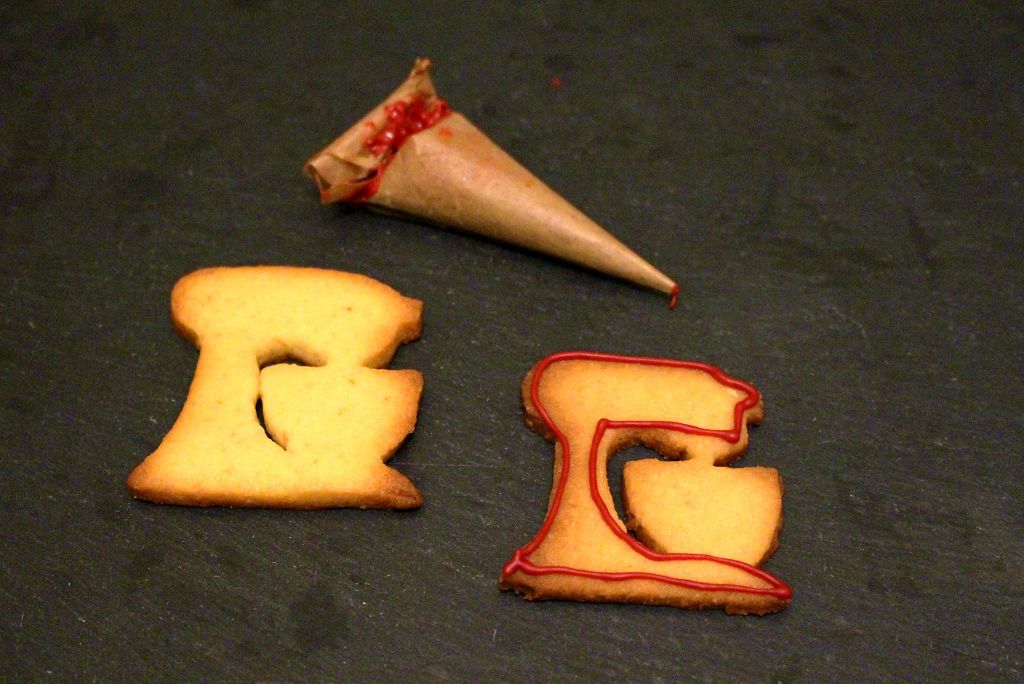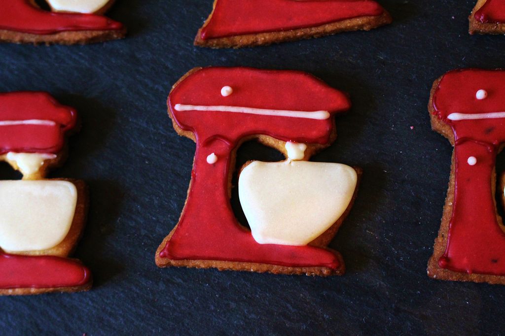 4.) Für einfache Formen wie Kreis, Herzen und so weiter, geht es jetzt in den Ofen für ca. 10 Minuten bis goldbraun. Kompliziertere Formen, wie aufwändige Blumen, oder auch die Kitchenaid, sollten ausgeschnitten nochmal für eine Stunde in den Kühlschrank. So weiten sie sich im Ofen nicht aus. Danach auf 170°C im vorgeheizten Backofen für ca. 10 Minuten backen, bis sie goldbraun sind.