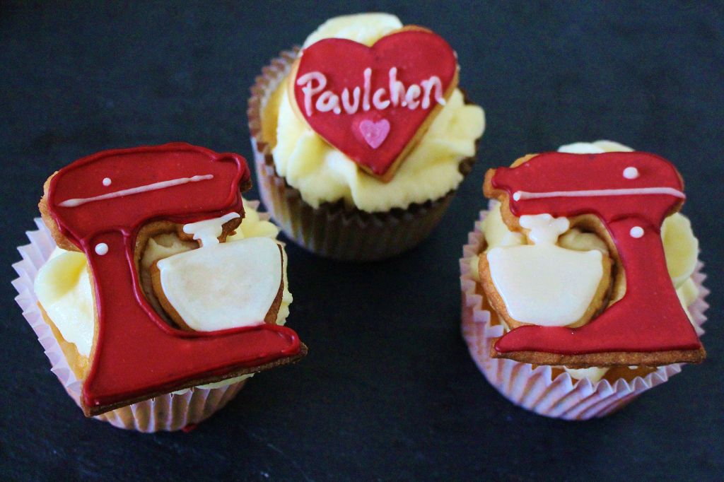 • Ach, das müsstest du eigentlich KitchenAid zusenden, das ist ja wirklich knuffig, dass deine Paul heißt und du so liebevoll auch noch eine Form kreiert hast + Cupcakes! Ich habe noch keine Küchenmaschine und weigere mich standhaft. Ostern zum ersten Mal bei meiner Mutter eine im Einsatz gehabt und finde immer noch, es geht auch ohne, so lange man nicht stundenlang Brot kneten muss!