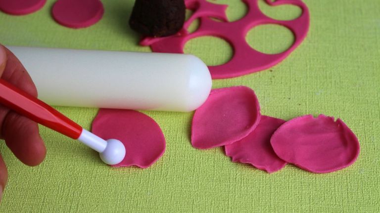 - Blütenpaste (50 % des Fondant durch Blütenpaste ersetzen, damit die Rosen schnell aushärten und bei Kontakt mit Cremes lange fest bleiben)
