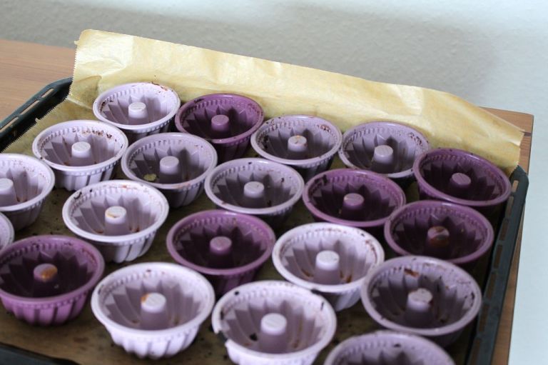 Los ging es für mich am Vortag mit dem Backen von rund 300 Mini-Gugelhupfen. Da ich oft gefragt wurde – so sehen meine Förmchen aus und sie sind von der Firma Lurch. Kann sie sehr empfehlen, flutschen nur so raus!