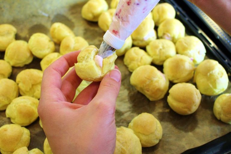 2. Brandteig ist so vielseitig! Und langweilige Sahne brauchen wir doch nicht, ich mag besonders die Variante mit Himbeer-Pudding-Frischkäse-Butter-Creme, das hab ich hier mal gemacht: http://jennyisbaking.com/2017/04/30/eclairs-with-raspberry-filling/