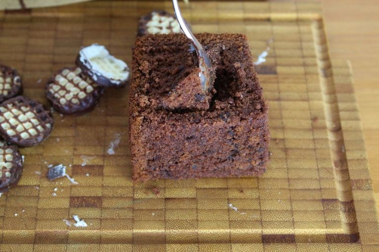 2.) In einer zweiten Schüssel Mehl, Kakao und Backpulver trocken gut vermischen und in die Eiermasse rühren. Die Milch dazugeben und optional die Schokoraspeln. Den Teig in eine gefettete Kastenform geben und im vorgeheizten Backofen bei 170° C für ca. 45 Minuten backen, bzw. bis ein Holzstäbchen sauber raus kommt.