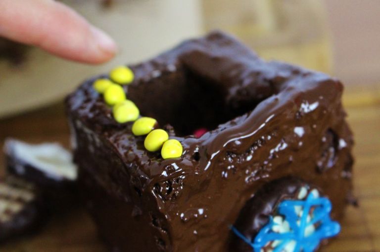 Die Wagons und Lokomotiven großzügig mit Schokolade bestreichen