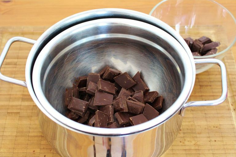 Schokolade im Wasserbad bei geringer Wärmezufuhr schmelzen