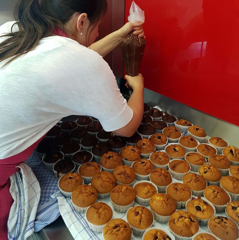Das Meer aus Cupcakes konnten wir dank der großen Küche super aufreihen.