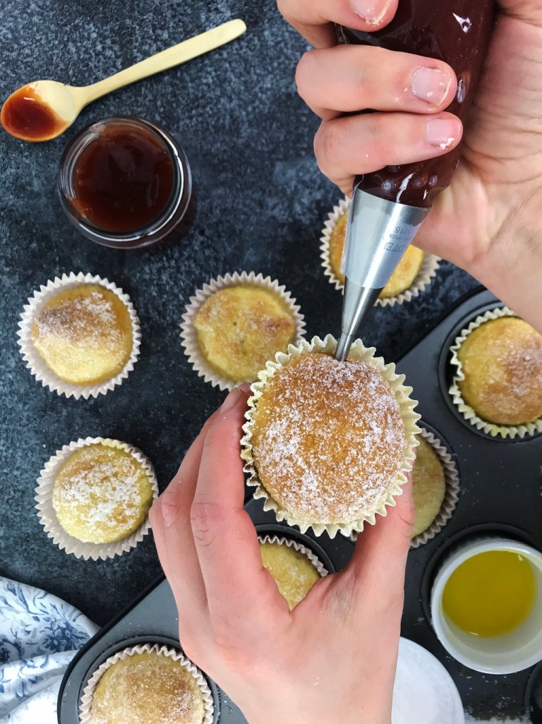 Ihr benötigt für dieses Rezept eine Muffin-Form, Papierförmchen und idealerweise eine Befüll-Tülle sowie einen Spritzbeutel. Hier geht es zu den Produkt-Empfehlungen für dieses Rezept.