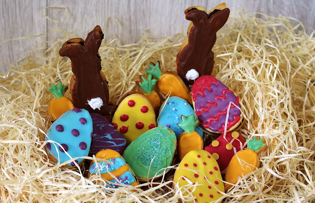 Endlich ist das Osterwochenende da und mit ihm (im besten Fall) gleich vier freie Tage! Ich freue mich total darauf am Wochenende mit Freunden und Familie ein buntes, erholsames und echt lustiges Wochenende zu verbringen. Welches Rezept könnte für heute also besser geeignet sein als ein buntes, lustiges Osterrezept? Ich habe mein leckeres Keksrezept heute nochmal ein wenig gepimpt – denn was könnte besser sein als ein Keks? Ganz klar: Zwei Kekse. Mit Schokolade in der Mitte.