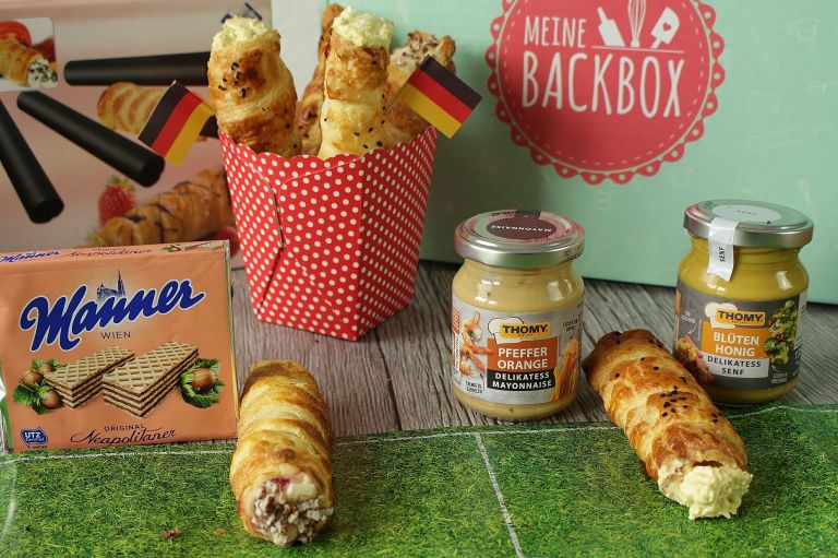 Die Mai-Box war der absolute Ober-Kracher! Das WM-Special mit dem Thema „Fingerfood & Snacks“ war prall gefüllt mit elf echt coolen Produkten drin im Wert von knapp 40 Euro. Ich liebe es, die „Meine Backbox“ aufzumachen, mir die Produkte anzuschauen und mir Kombinationen zu überlegen. Die Rezeptkarten dabei sind immer so schön kreativ, aber ich liebe, dass man auch selbst wild kombinieren kann. Es waren echt einige coole Sachen dabei, aber mein Highlight dieser Box war das Schaumrollen-Set (Zenker). Das sind kleine Röhrchen, um die man Teig herum wickelt und dann backt. Hatte ich noch nie ausprobiert, aber es hat so toll geklappt und ich bin echt begeistert. Die braucht man auch für das heutige Rezept. Ansonsten habe ich aus meine Backbox noch folgendes verwendet: