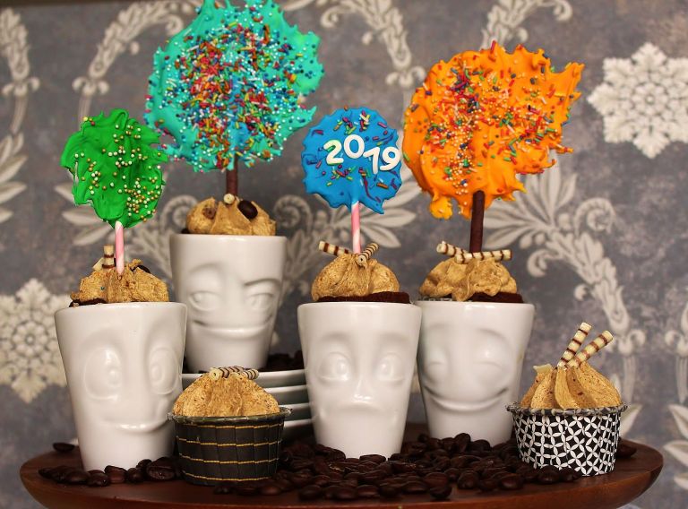 Habt ihr noch eine Packung gemahlene Nüsse von der Weihnachtsbäckerei übrig? Festhalten – die braucht ihr jetzt! Denn heute habe ich euch ein super leckeres Rezept mitgebracht für Espresso Nuss Cupcakes. Normalerweise bin ich gar nicht so ein riesen Fan vom Kaffee im Kuchen, aber ich hatte diesmal richtig Lust drauf und sie sind so lecker geworden! In den letzten Tagen habe ich bereits das Rezept für Kaffee Buttercreme mit euch geteilt und euch gezeigt, wie man essbare Feuerwerk-Deko macht. Beides passt perfekt zu dem heutigem Rezept! Und das beste: Sie halten euch an Silvester mit etwas Glück ein Minütchen Länger wach ;-)! Natürlich könnt ihr die Cupcakes aber auch ohne Creme und Deko machen – das geht dann auch blitzschnell. Dann empfehle ich euch tatsächlich nur ein bisschen Puderzucker obendrauf. Auch super lecker!