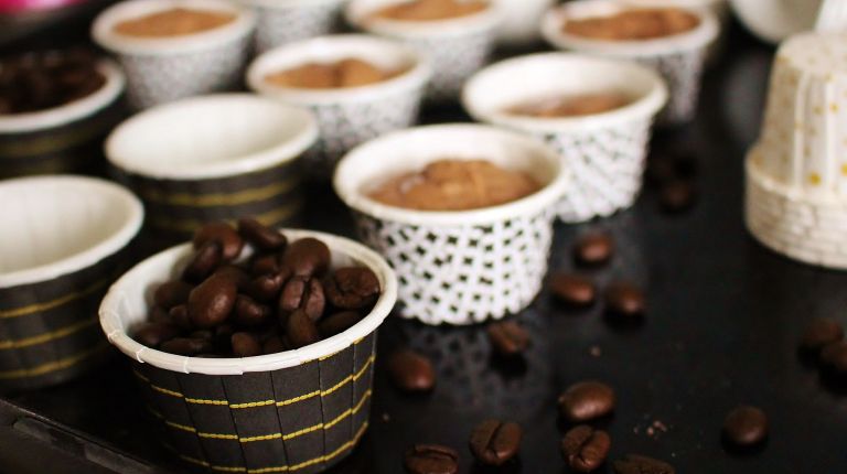 1.) Den Backofen auf 170°C vorheizen. Muffinförmchen auf ein Blech auslegen (Crinkle-Cups können allein stehen, ansonsten bitte ein Muffinblech mit Papierförmchen verwenden). Schon mal den Espresso / starken Kaffee (250 ml) zubereiten und leicht abkühlen lassen.