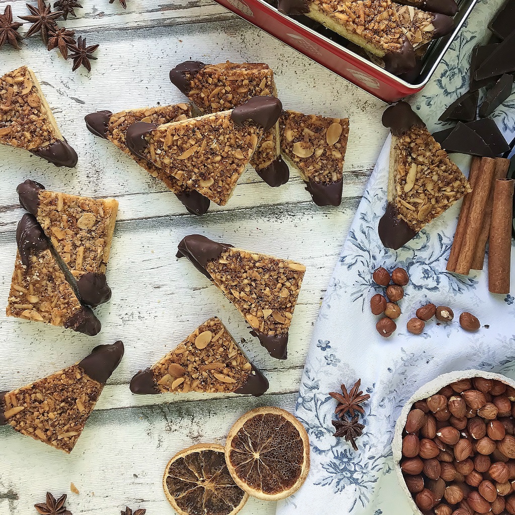 Dabei kann ich es ihm nicht einmal verübeln, denn diese Nussecken sind tatsächlich verdammt gut. Sie könnten euch sogar ganz verderben für jede billige Bäcker-Nussecke, die euch danach noch wagt unter die Augen zu kommen. Der Teig ist richtig schön butterweich und die Nüsse geben herrlich viel Aroma ab – einfach nur köstlich.