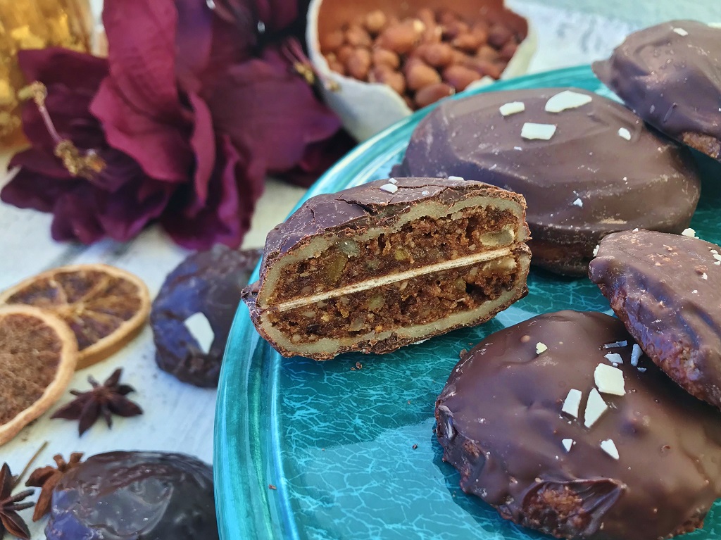 Elisenlebkuchen stehen auf der Liste der Must-Bakes zur jährlichen Weihnachtsbäckerei ganz weit oben. Die als „Königin der Lebkuchen“ bekannte Plätzchensorte steckt voller Nüsse und Gewürze und kommt ganz ohne Mehl aus. Ich mache gerne noch eine dünne Marzipan-Schicht mit auf die Lebkuchen, bevor ich sie dann mit Schokolade überziehe. Hauchdünn, damit es nicht zu süß wird. Für meinen Mitbewohner (der Marzipan gar nicht mag) mache ich auch ein paar ohne – deshalb findet ihr das Rezept hier mit Option auf Marzipan, damit es jeder machen kann, wie er es mag. Achtung: Die Plätzchen mit Marzipan und Schokolade können nach kurzer Zeit ein wenig anlaufen, je nachdem wie das Verhältnis von Marzipan zu Schokolade ist. Aber keine Sorge, das tut dem Geschmack nichts und oft überleben die Plätzchen auch nicht so lang.