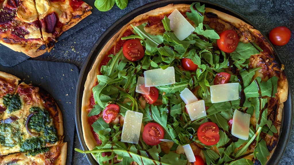 Frische Zutaten wie Rucola & Co erst nach dem Backen auf die Pizza geben.