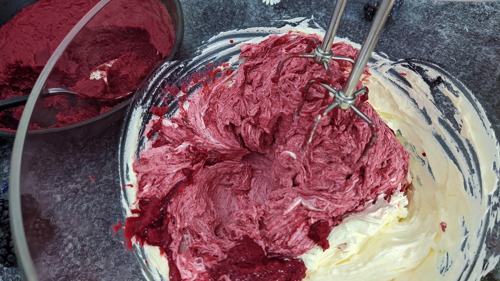 Um eine vegane Deutsche Brombeer Buttercreme zu erhalten, ersetzt die Butter durch eine vegane Margarine und statt des Eigelbs nehmt ihr noch 10 g Speisestärke mehr.