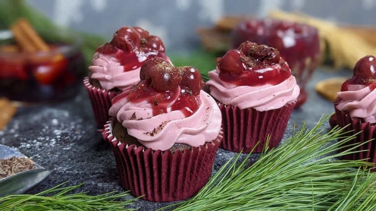 Ich liebe das Backen zur Weihnachtszeit ungemein: Plätzchen, Wintertorten und -ja!- auch Cupcakes kommen bei uns auf den Tisch. Diese Wintervariante mit Glühwein ist ungemein lecker und schmeckt nur dezent nach Alkohol. Mit ihr lassen sich besonders gut Glühweinreste verbrauchen, die noch von der letzten Weihnachtsfeier in der Flasche schlummern. So kam ich übrigens auch auf dieses Rezept. Wer es gerne ein bisschen stärker mag, der kann diese Glühwein Cupcakes auch noch mit etwas Rum verfeinern. Lecker, lecker, lecker! Und (wie es sich für ein Winterrezept gehört!) – die Cupcakes könnt ihr übrigens wunderbar einfrieren, inklusive Creme. Dafür einfach in eine luftdichte Box packen und ab ins Gefrierfach. Zum Auftauen 1-2 Stunden bei Raumtemperatur entspannt auftauen lassen, danach bis zum Verzehr im Kühlschrank aufbewahren.