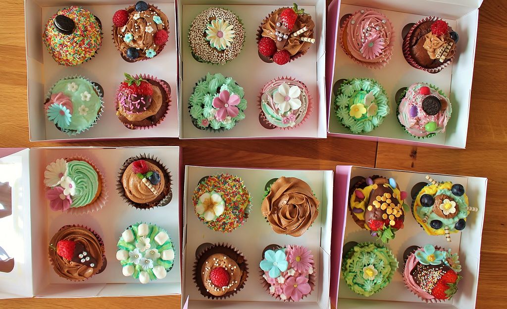 In diesem Kurs macht ihr das ganze Ding selbst: Küchlein, Cremes und Dekoration. Auf Wunsch verfeinern wir die Cupcakes und Färben Cremes mit Lebensmittelfarbe ein. Die Dekoration könnt ihr direkt auf meiner Streusel-Schatzkammer nehmen, oder mit mir kleine Fondant-Blüten selbst herstellt!