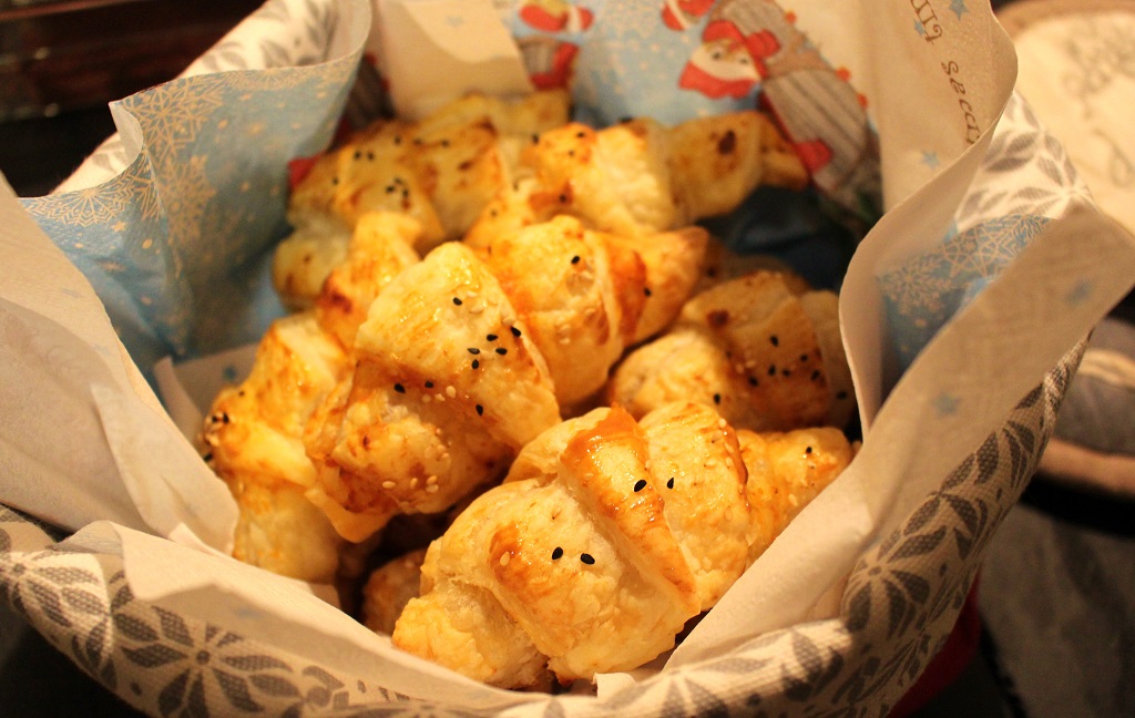 Die Käse-Tomaten Croissants sind der ideale Snack nach Weihnachten. Auch, wenn dieses Jahr der Winter nicht so richtig kommen wollte, ist man doch irgendwie auf Winterschlaf eingestellt. Dieser Snack ist da genau richtig. Er geht sehr schnell, man kann ihn für 2 oder für 20 Personen sehr schnell zubereiten und er ist selbst gemacht ohne wirklich viel selbst machen zu müssen. Und sogar ich habe nach Weihnachten erst mal ein paar Tage lang genug vom Süßen. Falls ihr also ein Mitbringsel für eine Hausparty zu Silvester braucht, aber nicht viel Zeit (oder Lust) habt oder sogar selbst Gäste bekommt – es ist ideal. Ich hatte noch eine Paprika-Sauce im Glas im Schrank, aber ihr könnt natürlich auch normale Tomatensauce kaufen oder selbst machen. Ich wünsche euch einen guten Rutsch und ein episch gutes Jahr 2016!