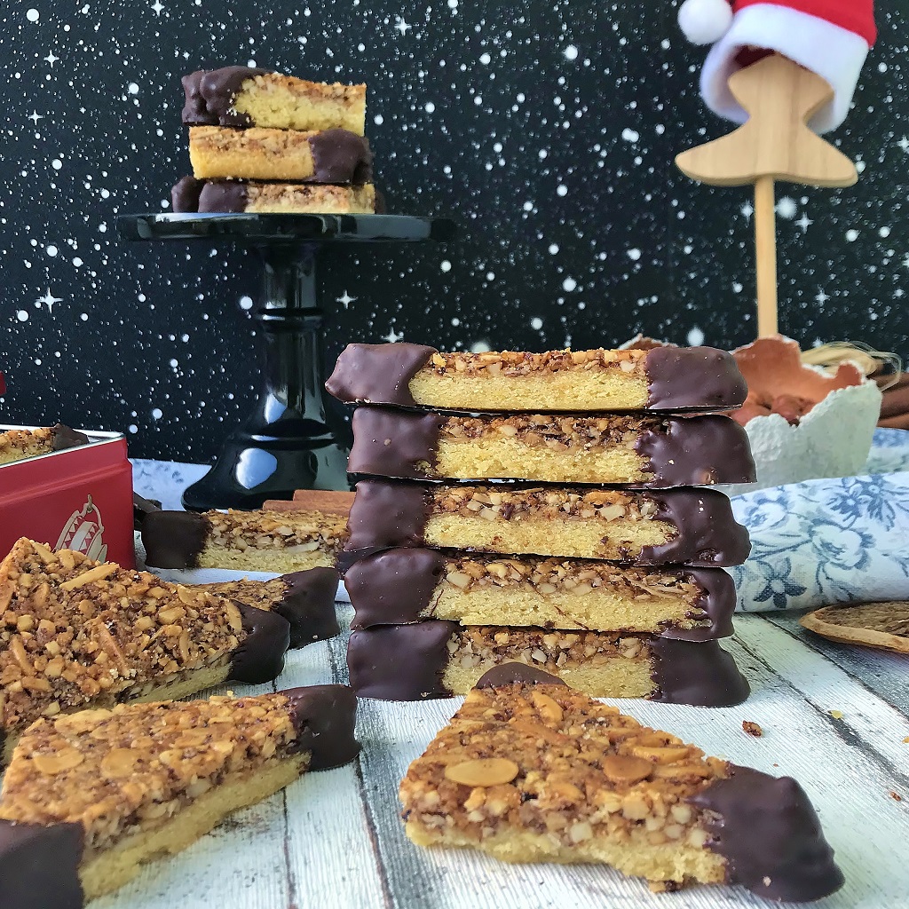 Mein Mitbewohner lebt in ständiger Angst davor, dass die Nussecken leer werden könnten. In diesem Jahr habe ich vier Bleche (!!!) davon zur Weihnachtsbäckerei gemacht. Das sind rund 120 Stück. Ihr würdet denken, das beruhigt den guten Mann. Stattdessen beäugelt er mich jedes Mal argwöhnisch, wenn ich eine Plätzchen-Geschenketüte packe und Nussecken reintue. Ich habe auch das Gefühl, dass er zählt, wie viele ich rein mache. Und spätestens bei der dritten sagt er dann (und seine Stimme ist dabei etwas höher als sonst):