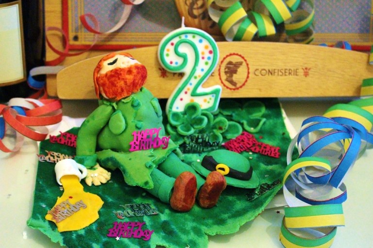 „The luck of the Irish“ möge euch in den nächsten Wochen hold sein, denn mit dieser genialen Torte eröffne ich die Feier für meinen 2. Bloggeburtstag! Jawohl, MainBacken wird zwei Jahre alt. So langsam lernt der Blog quasi sprechen und läuft schon ganz stabil (ha-ha). Aber was wäre eine Feier denn, ohne Kuchen, Geschenke und Freunde 🙂 Und genau diese drei Dinge bringen wir hier zusammen – bis Ostern erwartet euch jede Woche ein neues kreatives Rezept und ein passendes Gewinnspiel dazu. Denn die Geschenke zum Bloggeburtstag, bekommt natürlich wieder ihr! Damit kommen wir auch zum dritten Punkt – den Freunden, denn ich möchte mich ganz herzlich bei euch bedanken: Für eure tollen Kommentare, eure ermutigenden Worte, eure Mails, eure Nachfragen und, dass ihr MainBacken seit nunmehr zwei vollen Jahren begleitet. Deshalb sind alle Gewinnspiele exklusiv für alle gemacht, die meinem Blog folgen und ihn zu dem machen was er ist – nämlich ziemlich knorke.
